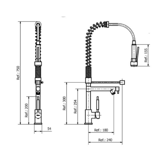 Sus formas —definidas, compactas y bien proporcionadas— transmiten solidez y modernidad. Los modelos con rociador flexible amplían el rango de uso, haciendo más cómodas tareas diarias como lavar, enjuagar o llenar recipientes grandes.