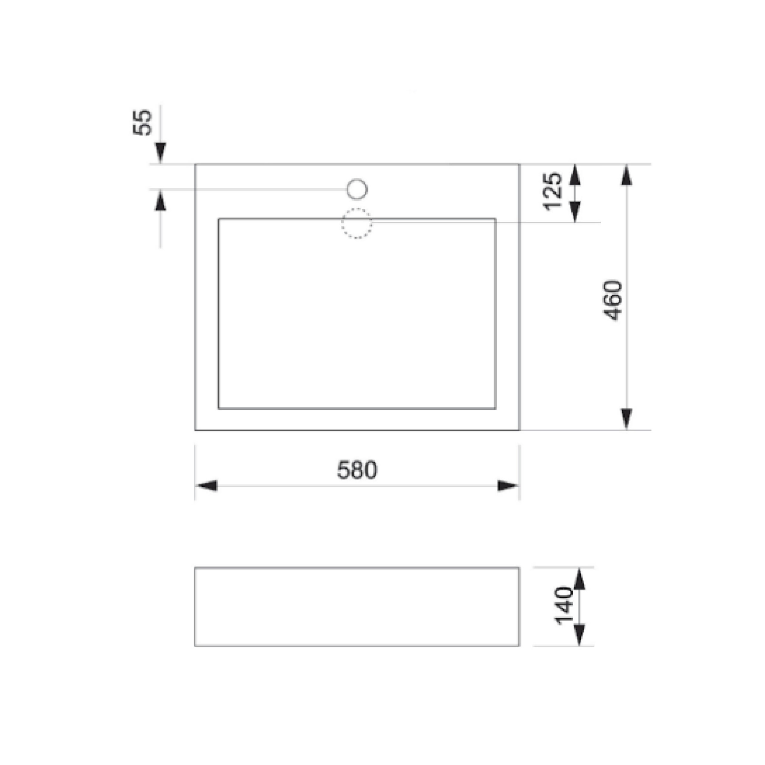 Bacha De Apoyo 560x460x135 Mm Con Desague Oculto 1 Agujero
