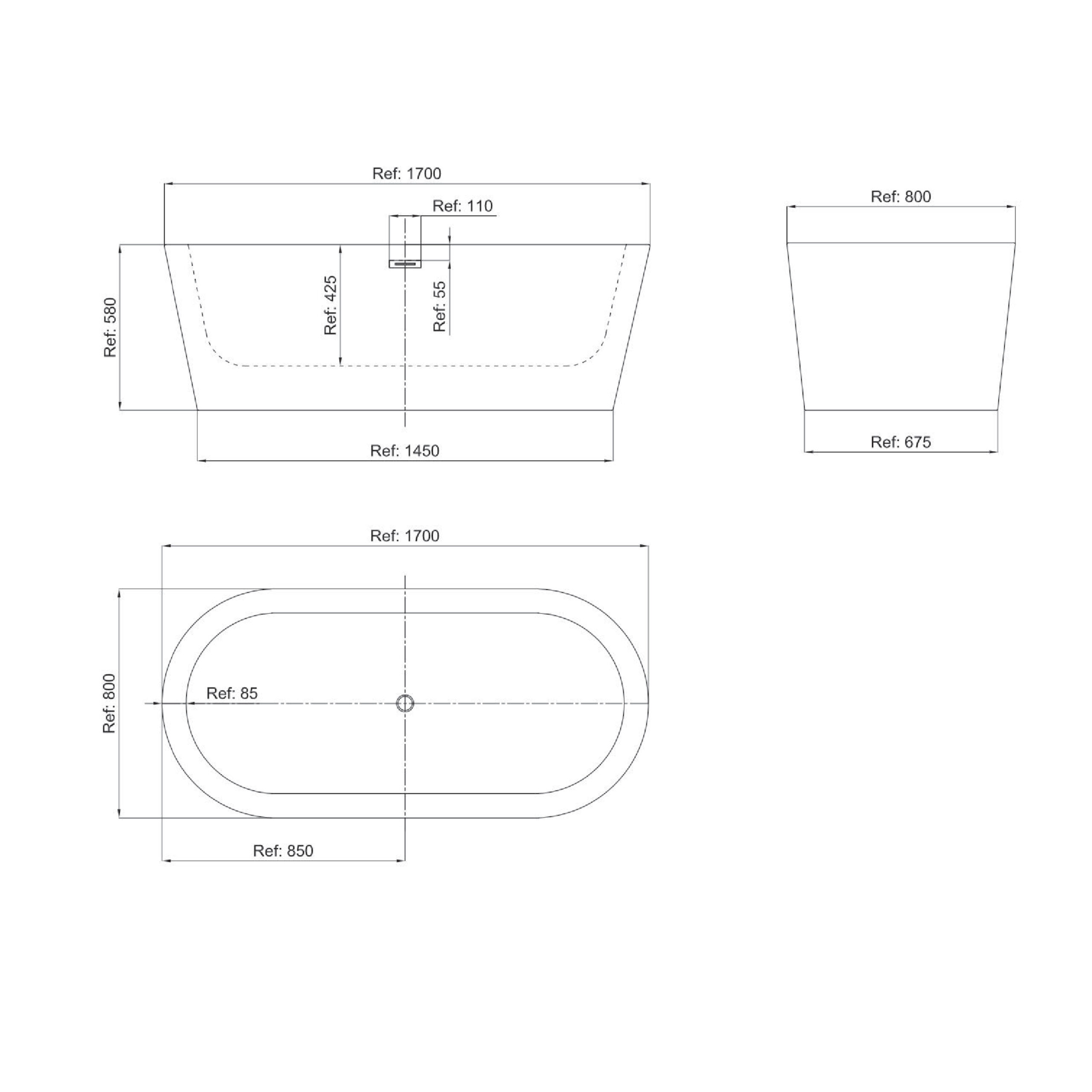 Bañera Isla De Acrilico 1700x800x580 Mm