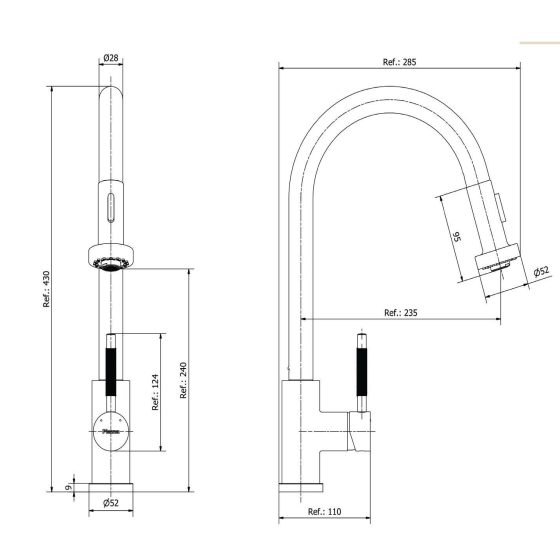 Sus formas —definidas, compactas y bien proporcionadas— transmiten solidez y modernidad. Los modelos con rociador flexible amplían el rango de uso, haciendo más cómodas tareas diarias como lavar, enjuagar o llenar recipientes grandes.