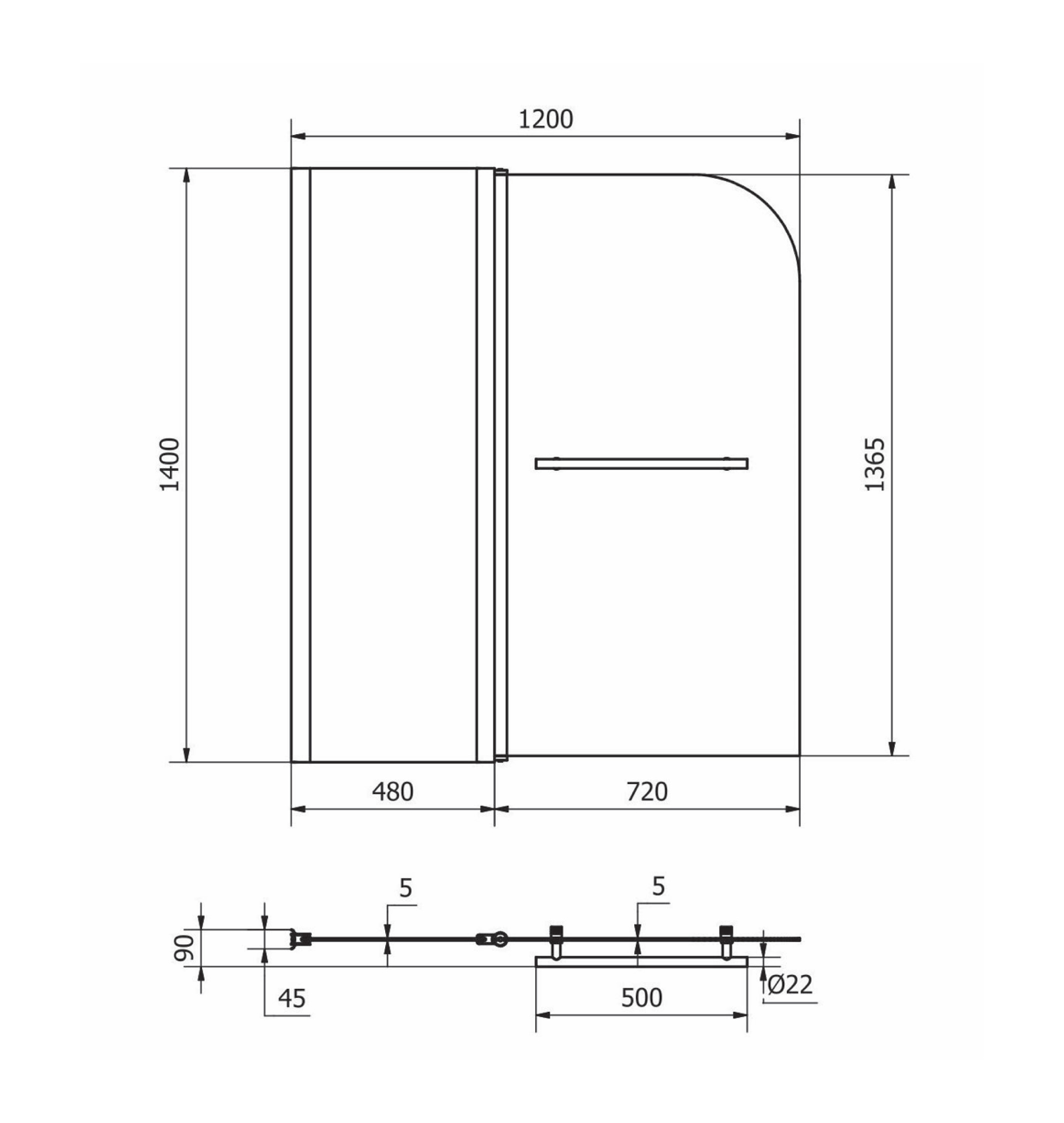 MAMPARA DE CRISTAL TEMPLADO PAÑO FIJO + PAÑO MOVIL 1200MM x 1400MM espesor 5mm