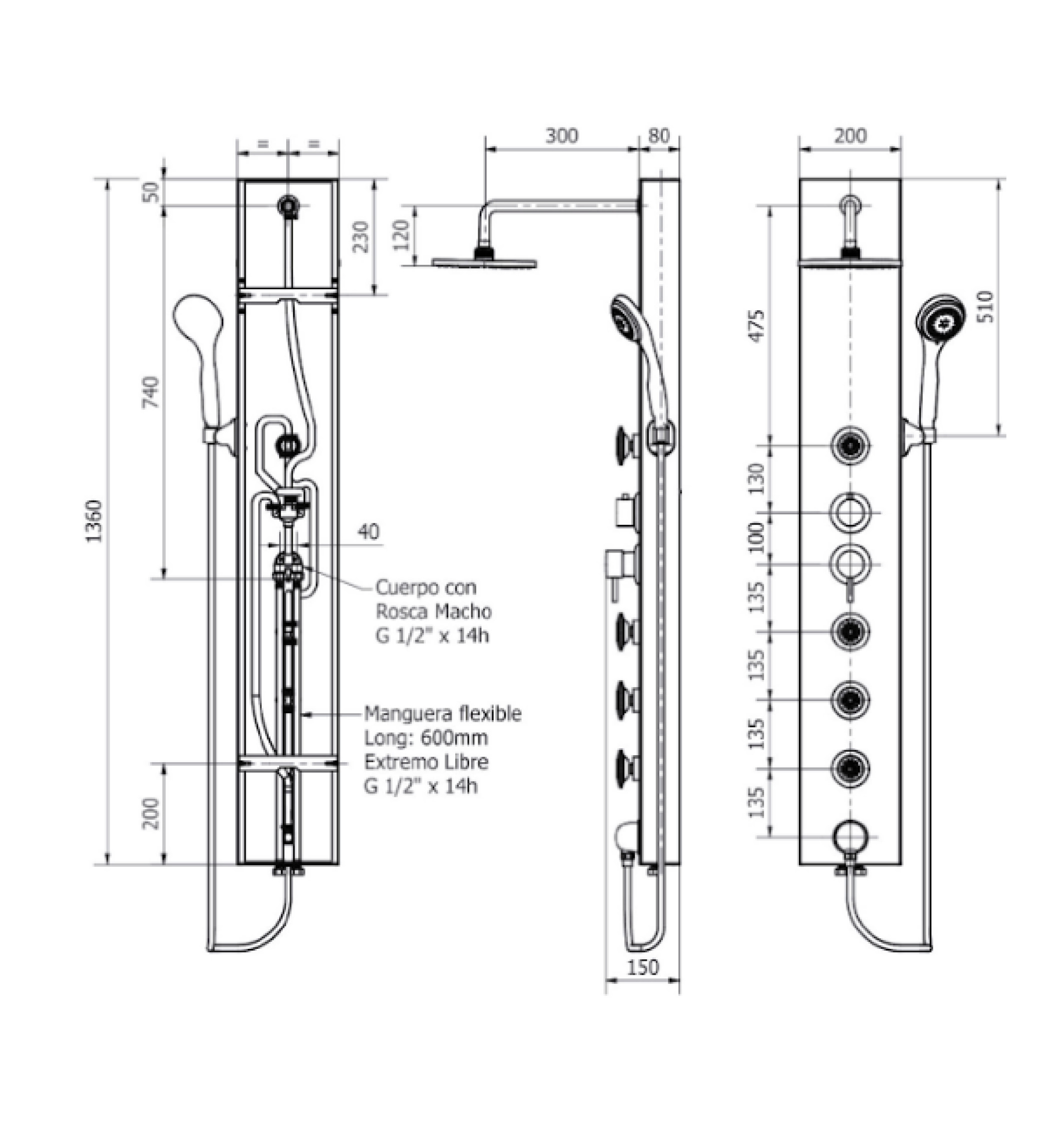 PANEL DE DUCHA C/ JETS VIDRIO ROJO