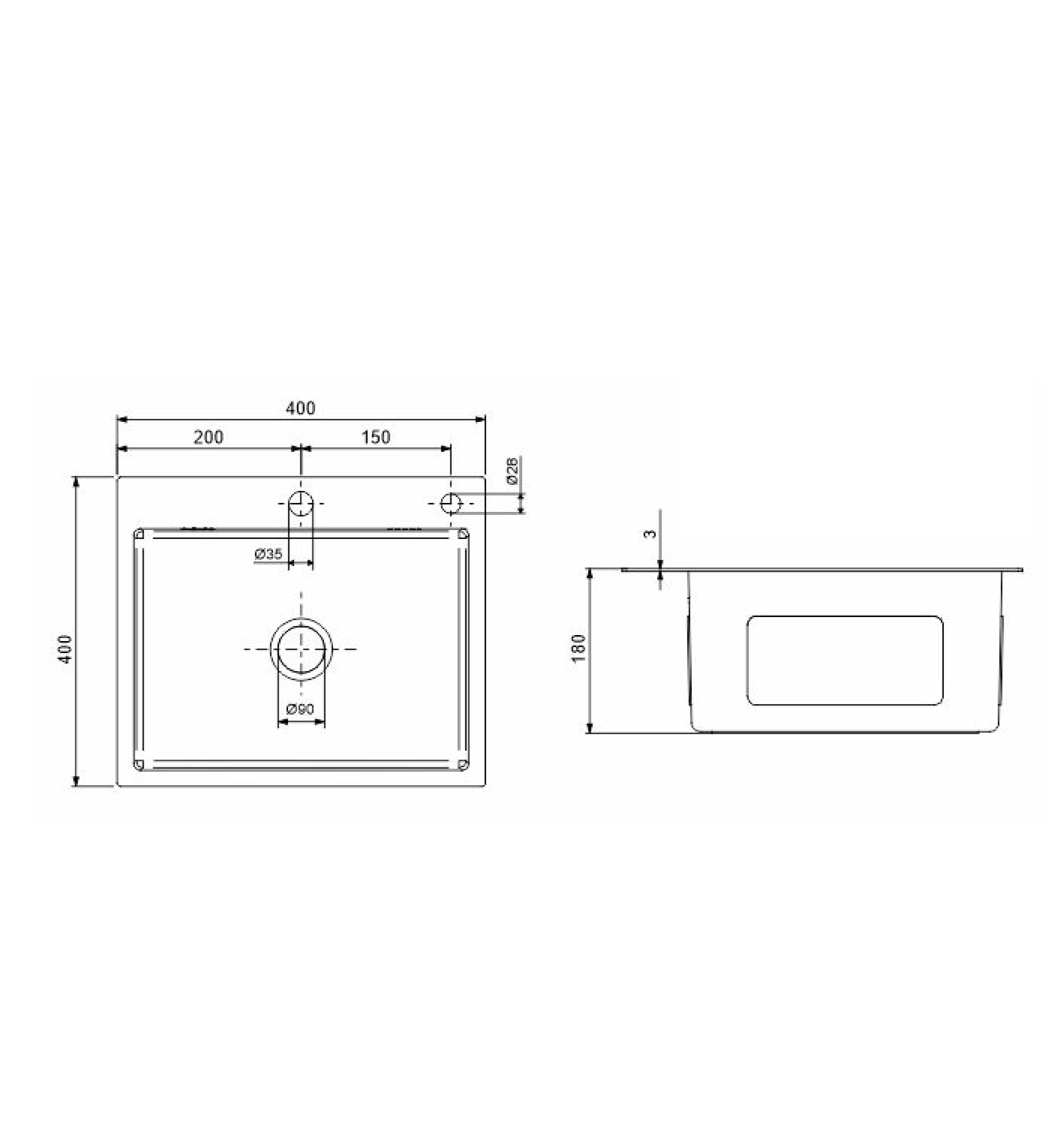 LUXE PILETA DE COCINA 400x400x180 mm INOX 304